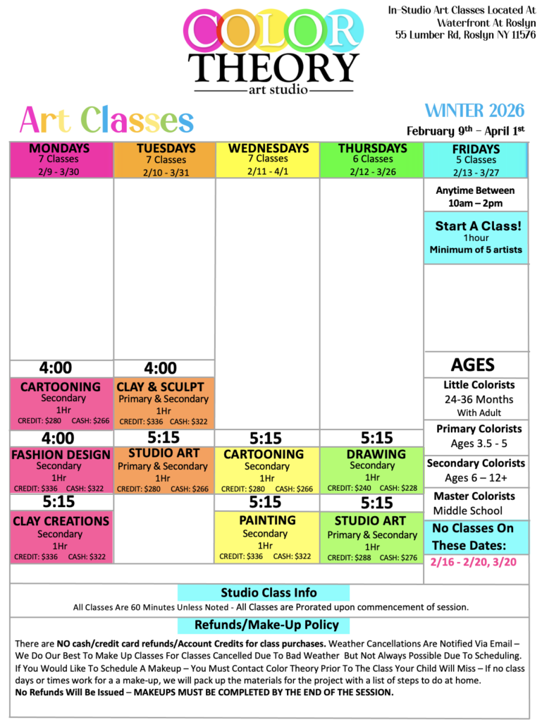 WINTER 2026 STUDIO SCHEDULE